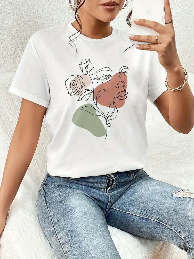 Daca esti in cautarea unui tricou dama care imbina stilul artistic cu functionalitatea de zi cu zi, modelul Abstract Flowers and Face este alegerea potrivita.