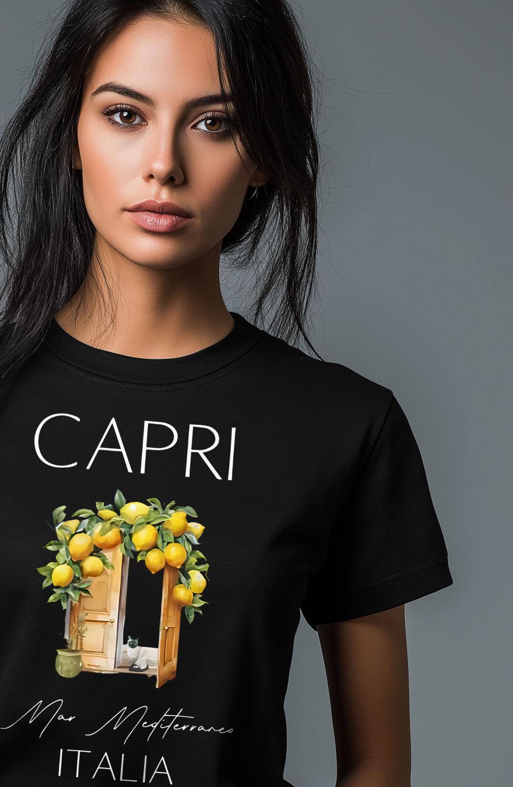 Tricou dama, Capri Italia, Mediterana, Negru