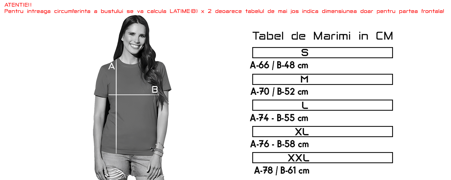 ATENTIE ! Pozele sunt cu titlu de prezentare. Tricourile au croiala clasica, conform imaginii din tabelul de marimi.