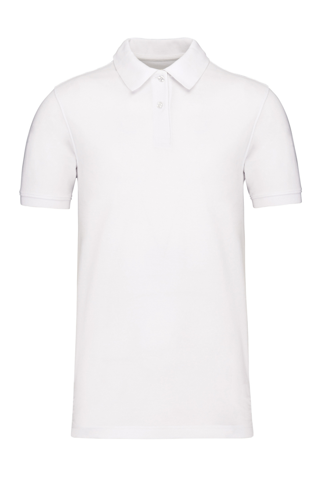 Tricou polo piqué pentru barbati, bumbac organic, sustenabil, ecologic, 180gr. Alb